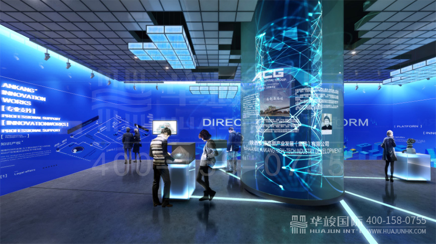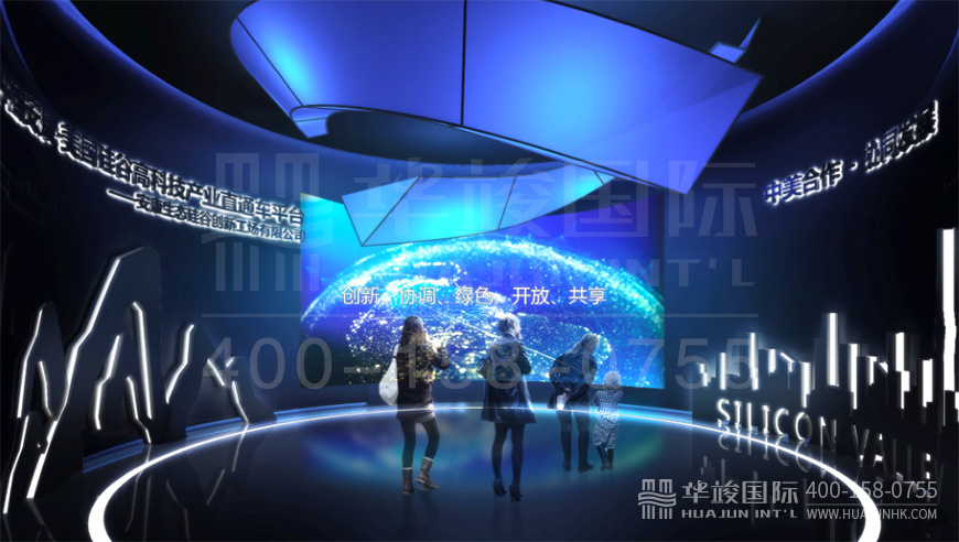 安康生態(tài)硅谷創(chuàng)新工場(chǎng)展廳設(shè)計(jì)項(xiàng)目由華竣國(guó)際執(zhí)行整體設(shè)計(jì)施工,華竣國(guó)際以創(chuàng)新的智慧展廳設(shè)計(jì)理念,融合互聯(lián)網(wǎng)+思維,順應(yīng)科技化趨勢(shì),結(jié)合互動(dòng)多媒體、數(shù)字影片、數(shù)字沙盤(pán)、虛擬現(xiàn)實(shí)等科技展項(xiàng),打造震撼視覺(jué)的高品質(zhì)科技展廳。